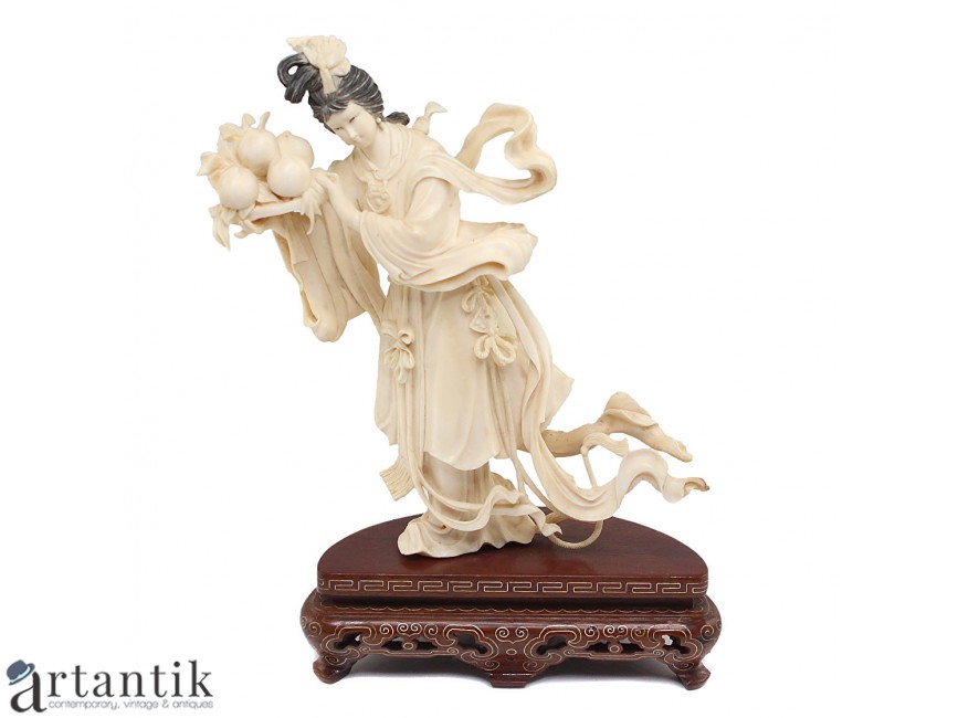 Antique Guan Yin: statuetă Guan Yin sculptată în lemn de bog și abanos – China Portofoliu ArtAntik Gallery