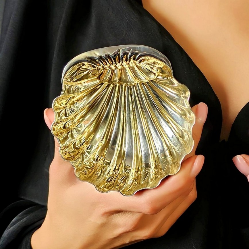 Formele ample, concave, cu nervuri radiale perfect ritmate trimit direct la acest simbol al rafinamentului nobiliar și al tradiției orfevrăriei franceze și italiene,