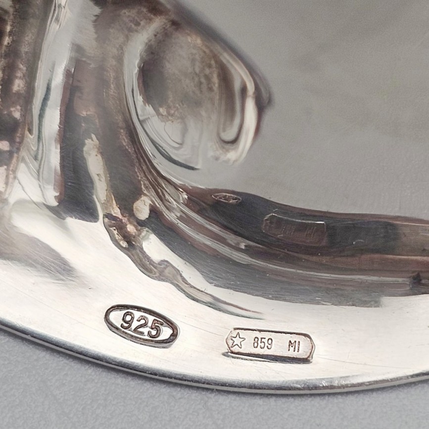solniță cu marcaj poligonal cu număr de atelier și abreviere de provincie: 859 MI (Milano), aparținând atelierului San Lorenzo