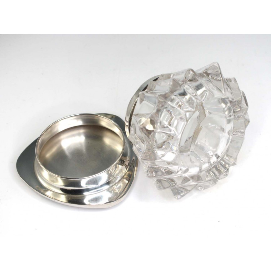 cristal turnat în tipar, tăiat, polișat, argint presat și cizelat
