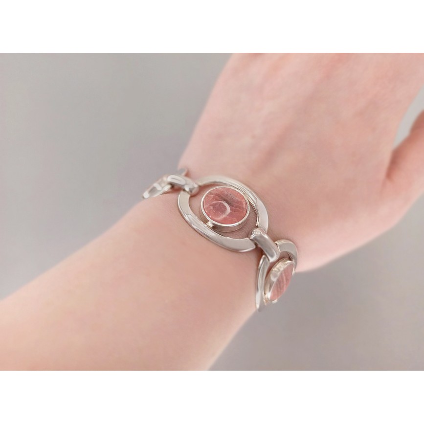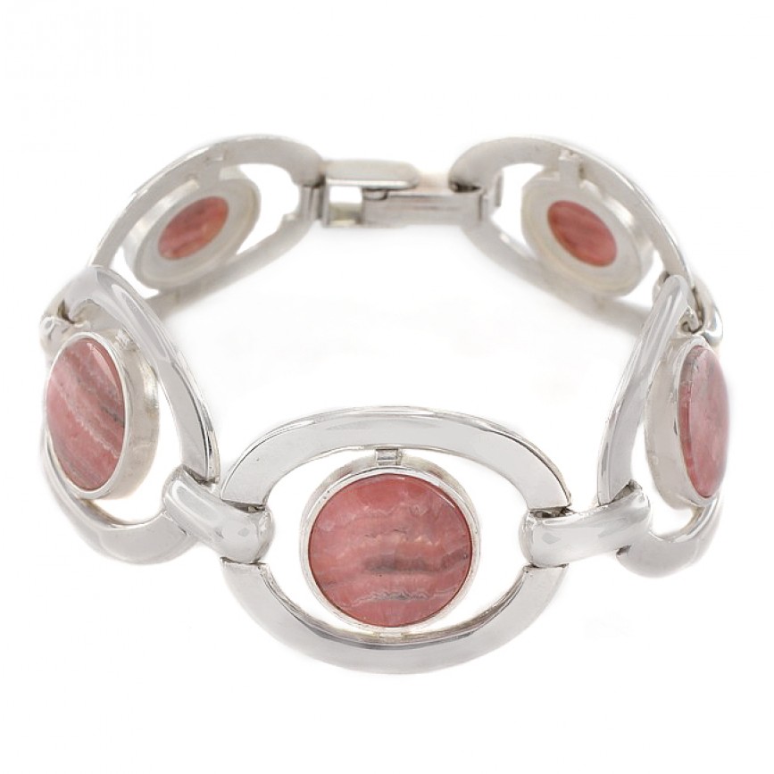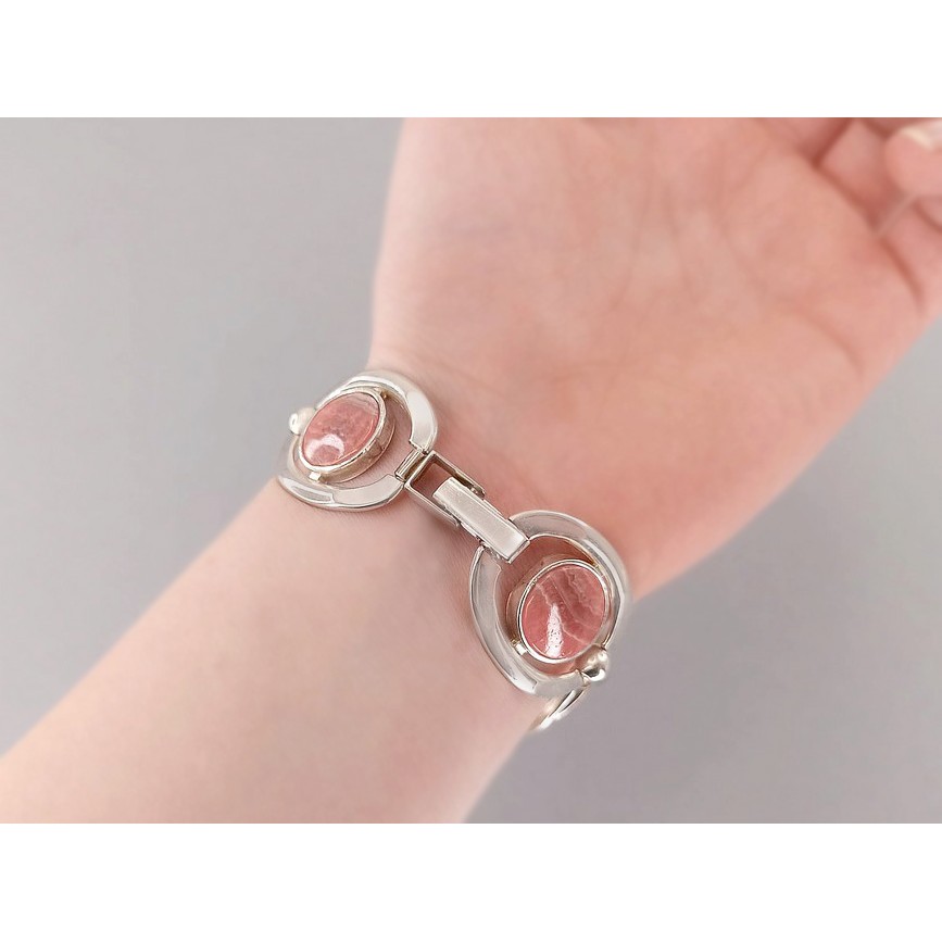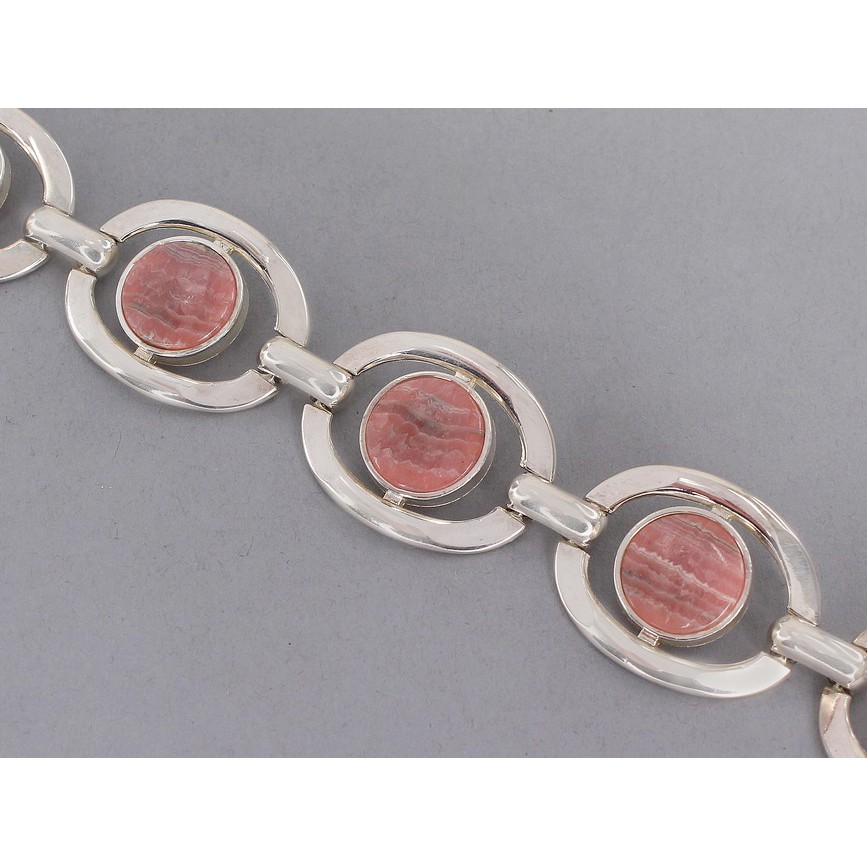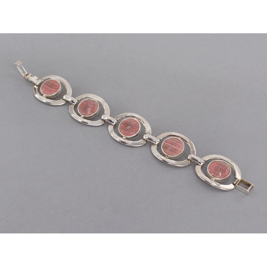 Brățară mid-century din argint decorată cu rodocrozit natural