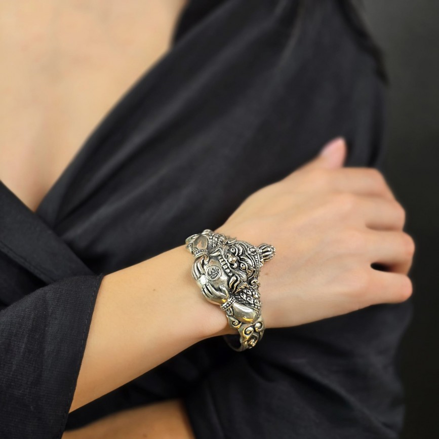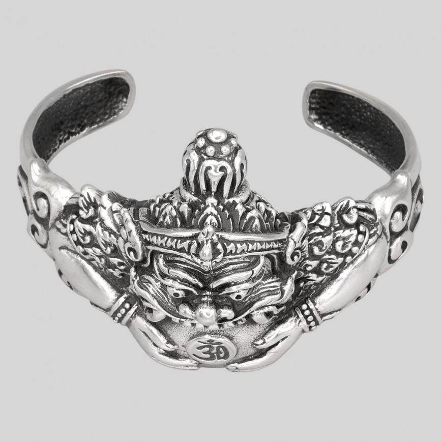Brățară cuff din argint, decorată cu reprezentarea zeității apotropaice Phra Rahu din panteonul spiritualității thailandeze.