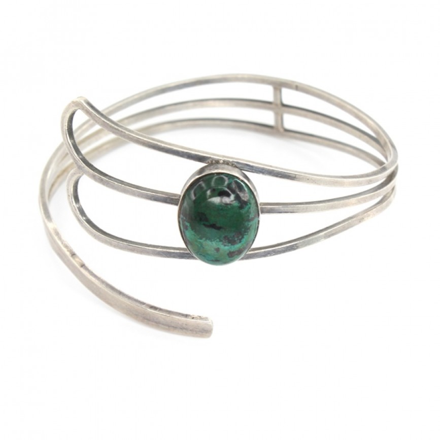 Elagantă brățară modernistă israeliană, decorată cu un antural de piatră Eilat (Piatra Regelui Solomon).