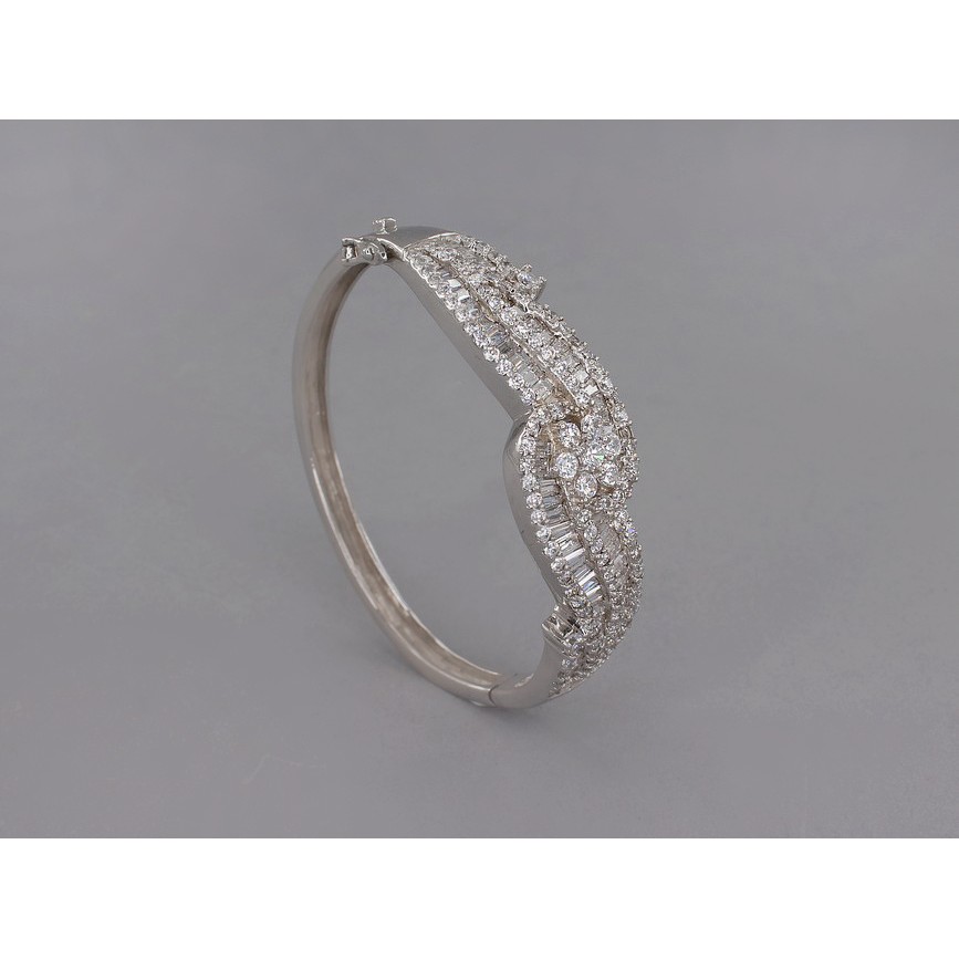 Brățară cocktail modernistă, tip ”bangle”, din argint , abundent decorată cu antuaraje de cristale zirconium.