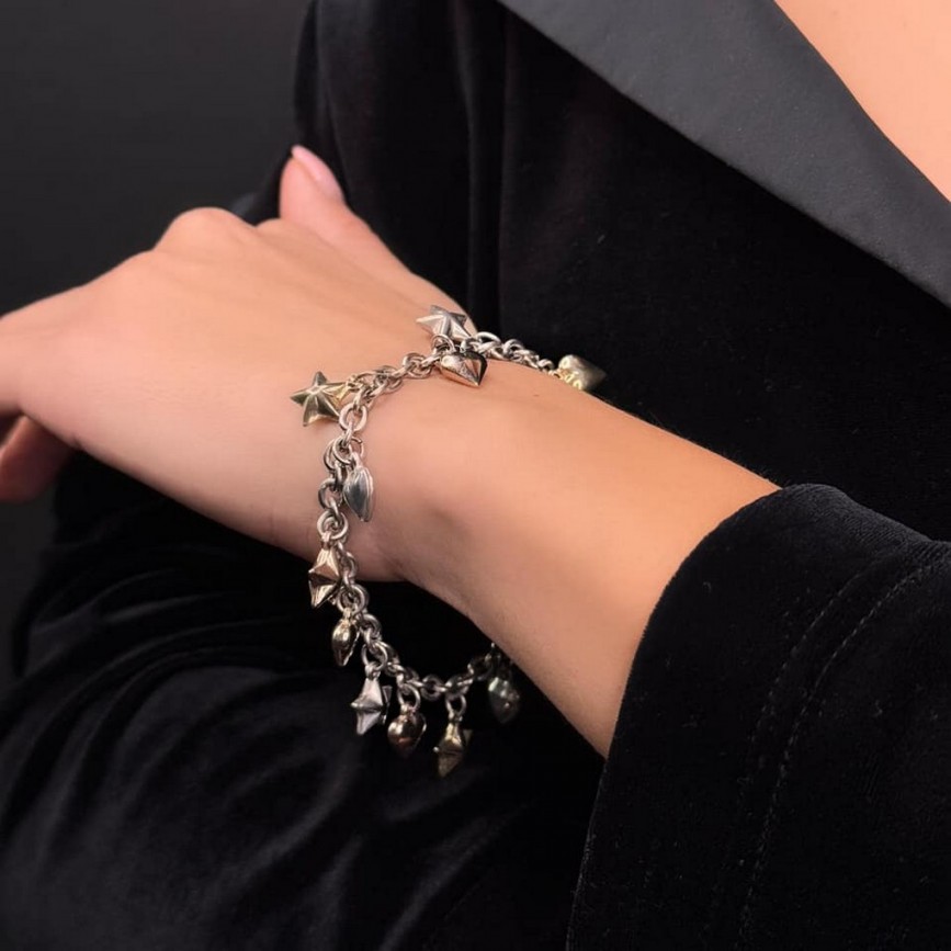 Brățară din argint Valentines cu charmuri amplu volumizate | new old stock