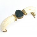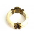 Opulentă brățară tribală indiană, baloyun, realizată din mozaic de os natural și alamă decorată prin filigranare și granulare manuală.