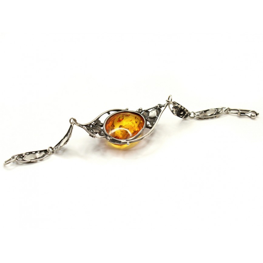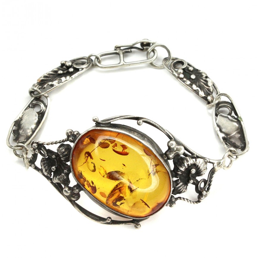 Brățară în stil Art Nouveau cu anturaj de chihlimbar baltic natural