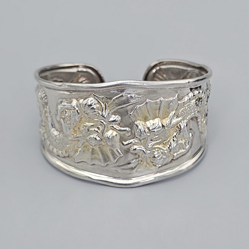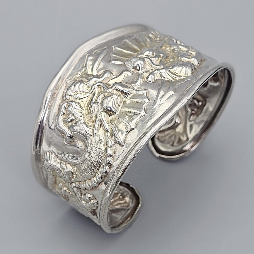 Brățară cuff manchette din argint decorată cu Dragoni afrontați.