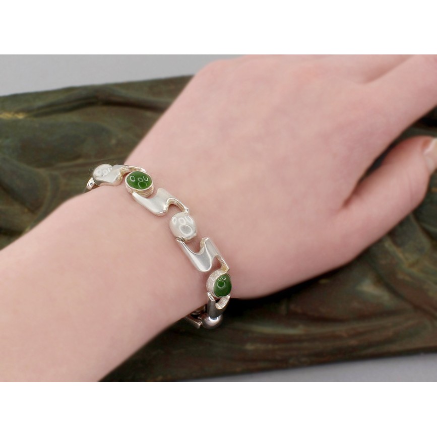 Brățară modernistă din argint decorată cu jad și opal natural | Germania cca.1970