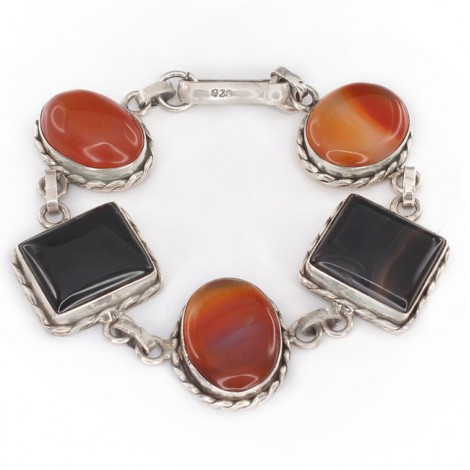 Brățară vintage din argint, decorată cu frumoase specimene de pietre naturale :