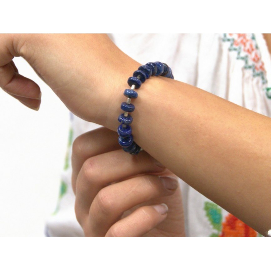 Brățară decorată cu rondele de lapis-lazuli natural,