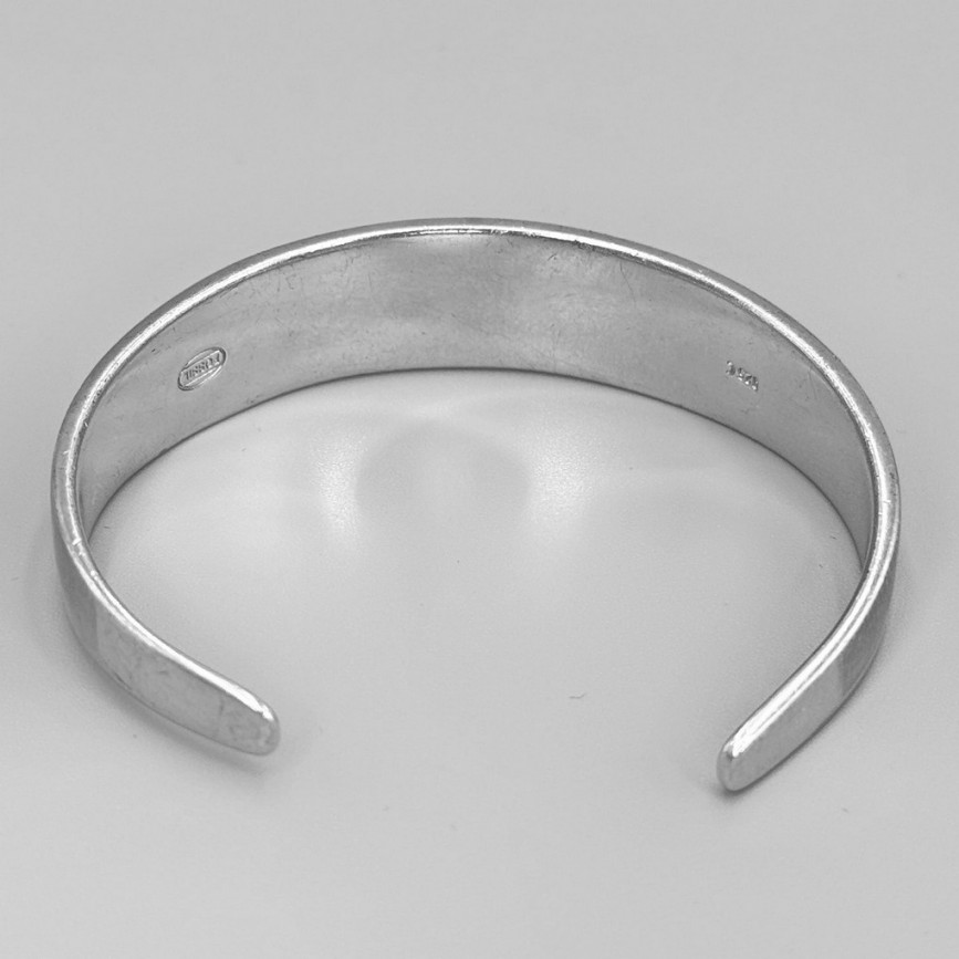 Brățară Fossil realizată din argint masiv, într-o construcție rigidă de tip cuff, cu deschidere laterală, care păstrează un echilibru subtil între forță și rafinament.