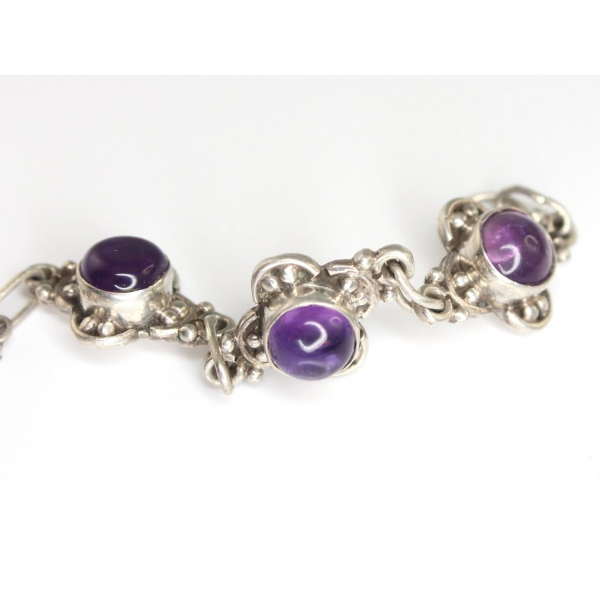 brățară formată din șapte elemente quatrelob decorate cu anturaje de ametiste naturale