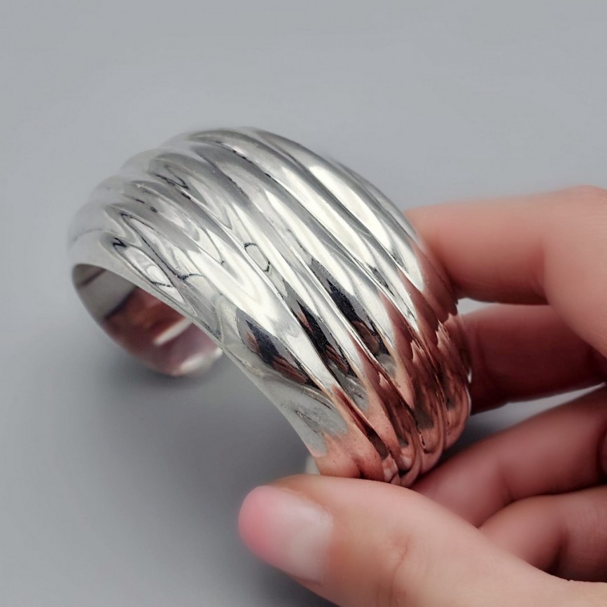 Remarcabilă brățară manchette din argint amplu volumizat.