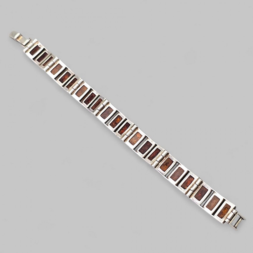 Brățară modernistă din argint decorată cu anturaje de chihlimbar baltic natural | cca. 1970