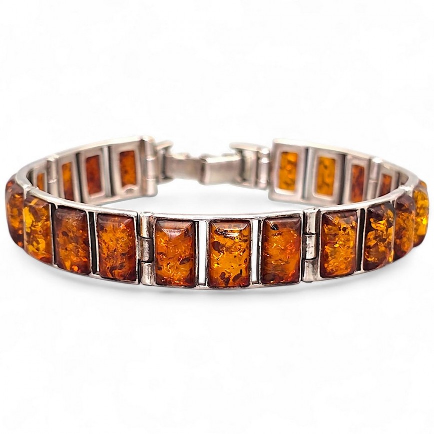 NOU Brățară modernistă din argint decorată cu anturaje de chihlimbar baltic natural | cca. 1970