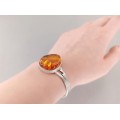 Brățară statement modernistă, decorată cu un remarcabil anturaj de chihlimbar baltic natural.