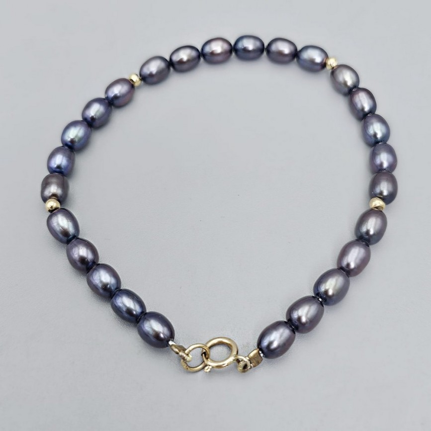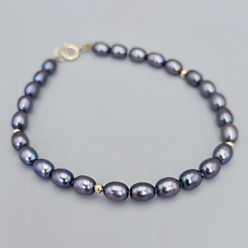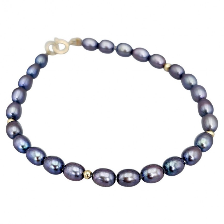 Rafinată brățară cu perle negre naturale de cultură și aur galben 18k.