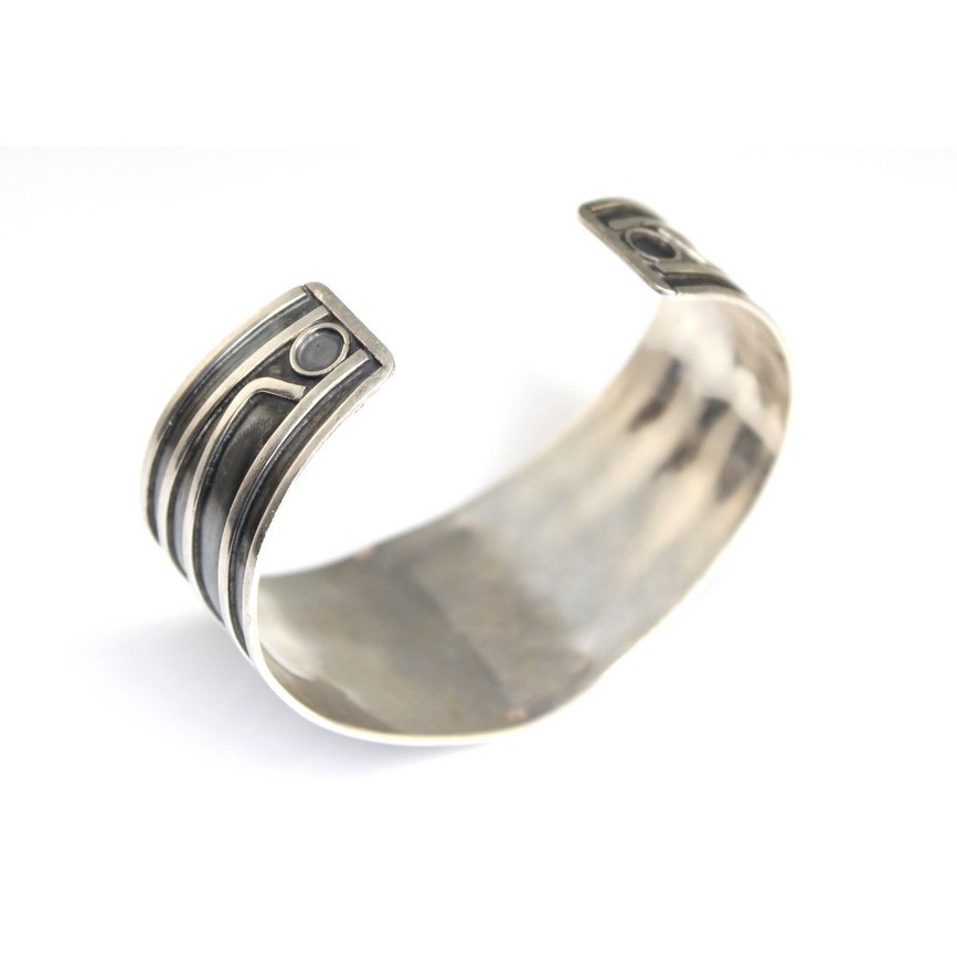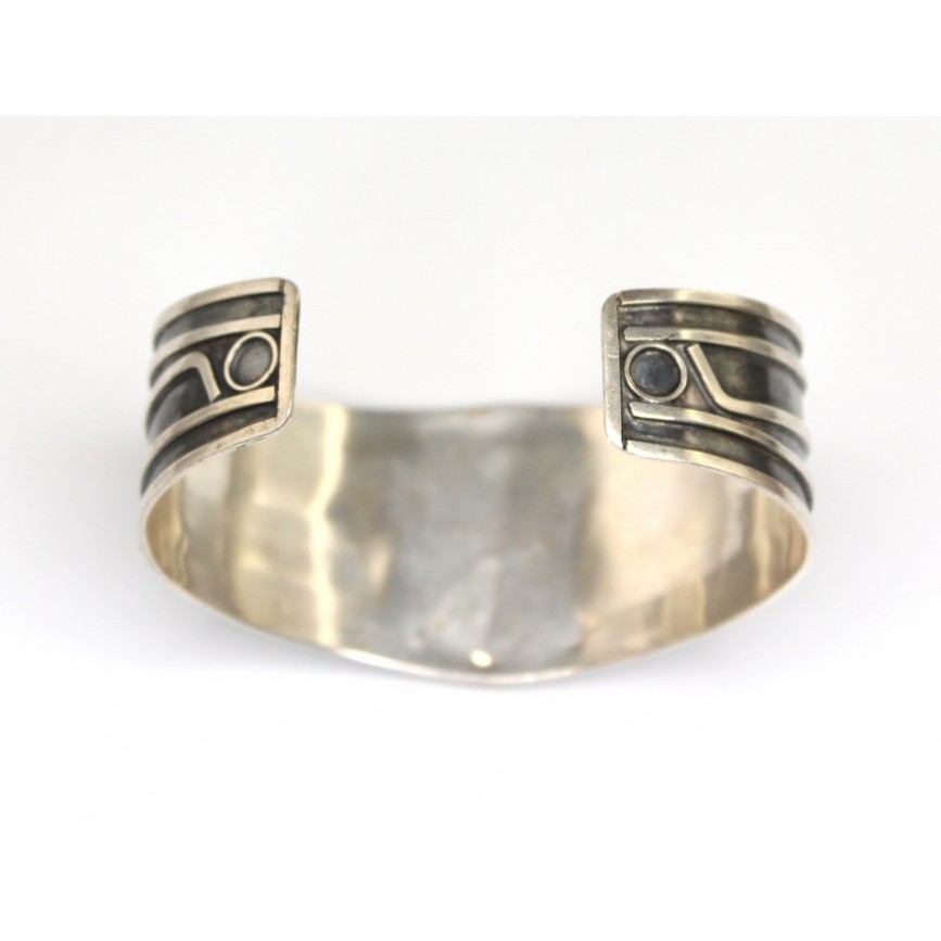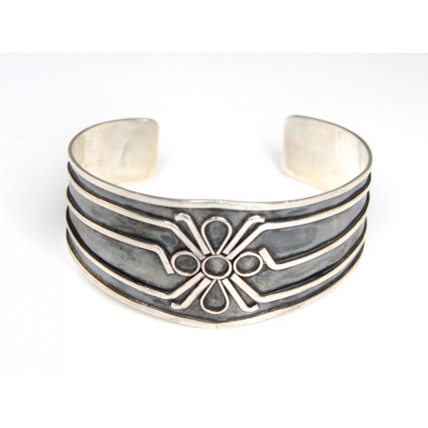 brățară modernistă peruviană, cu design geometrizat și decorat cu motive inspirate de geoglifele culturii Nazca