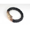 Brățară tip " bangle " realizată din piele naturală împletită și argint.