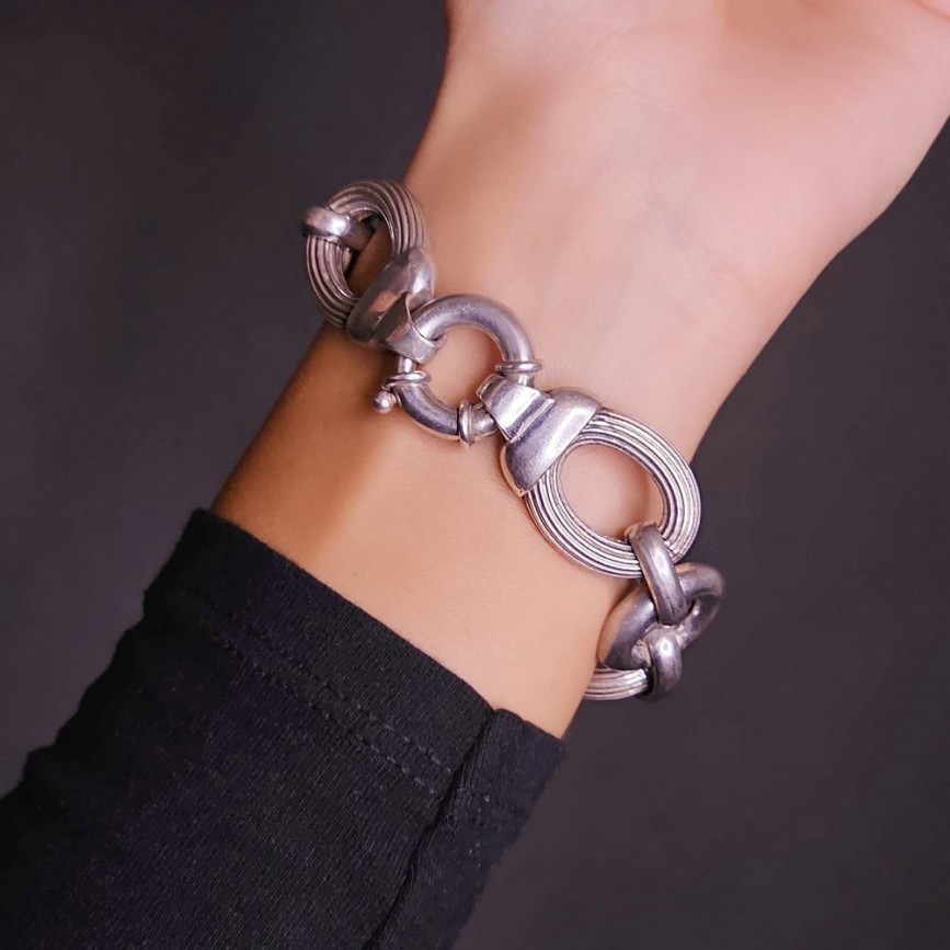 Brățară statement retromodernistă chainlink din argint amplu volumizat.