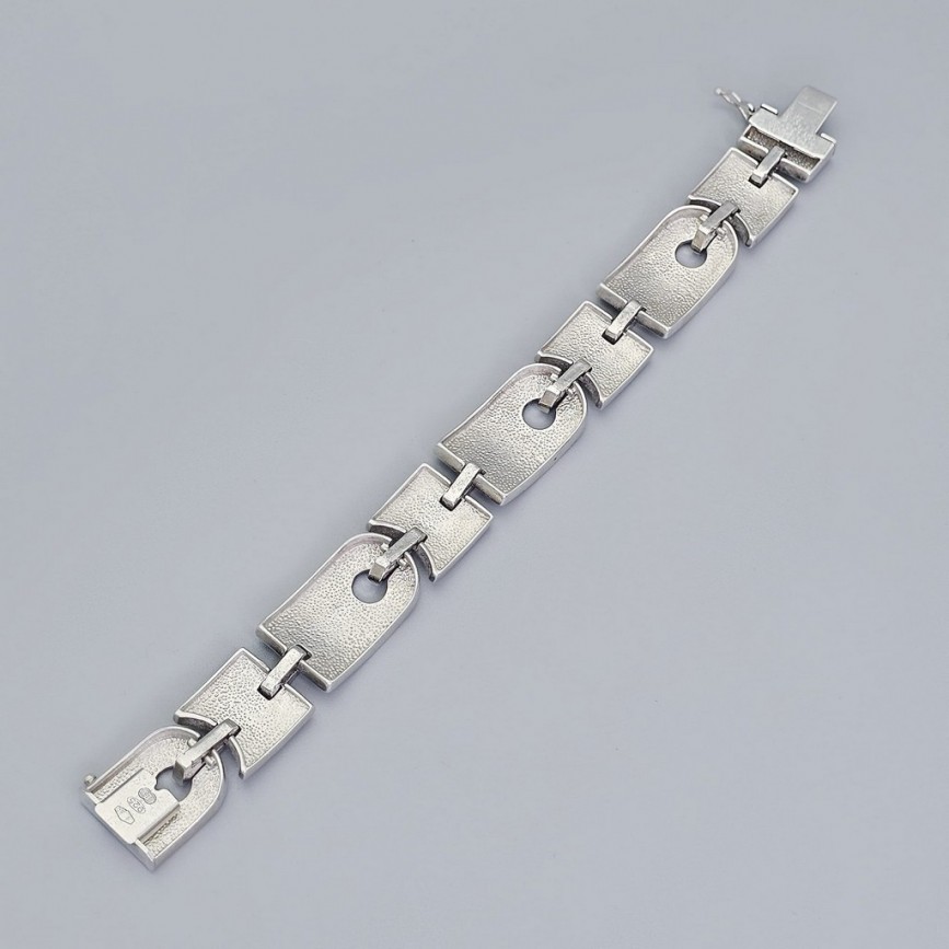 Brățară statement unisex mid-century din argint