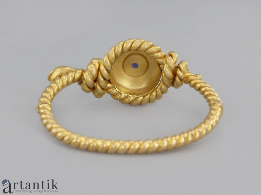 Remarcabilă brățară victoriană din aur, decorată cu laitmotive de factură romantică: