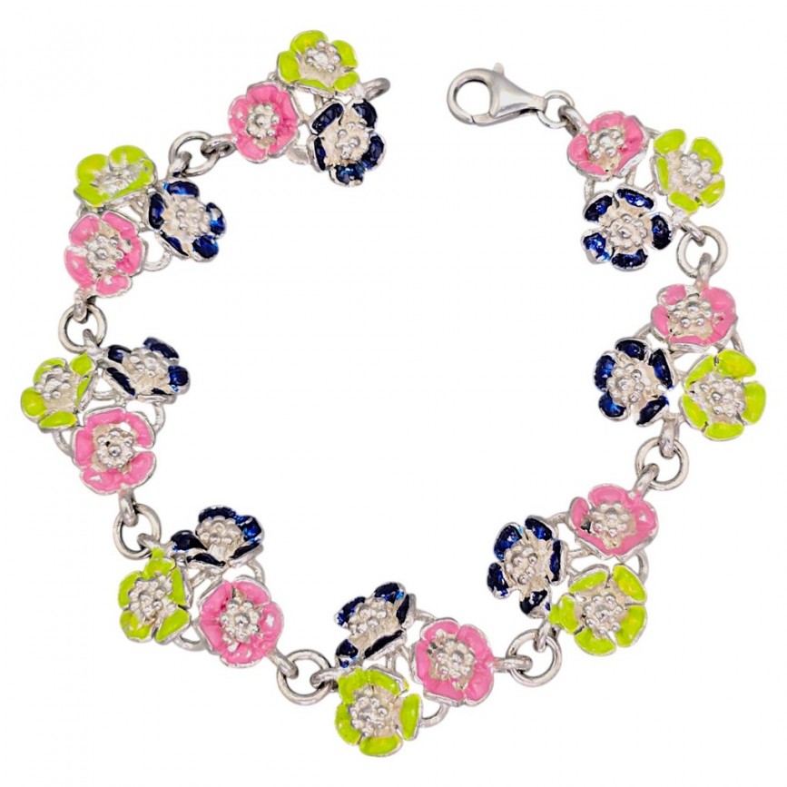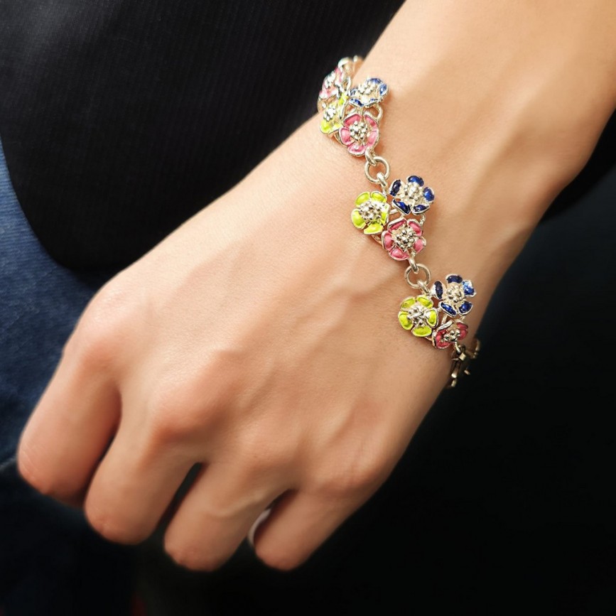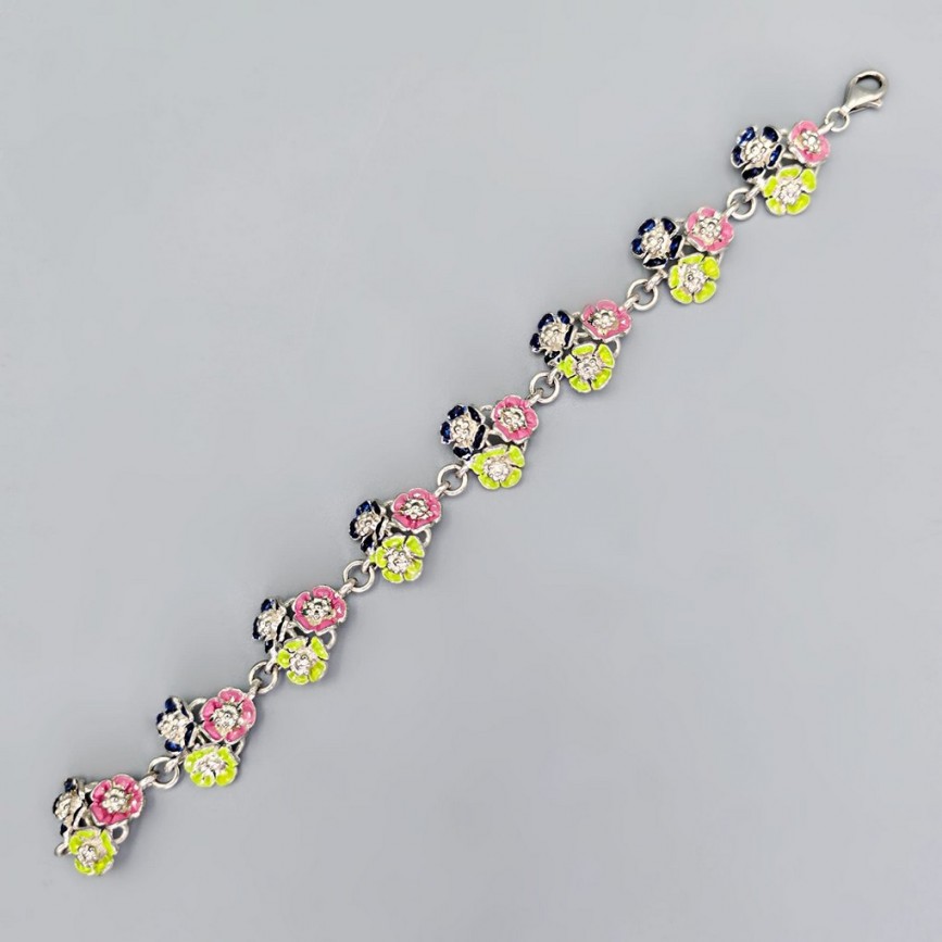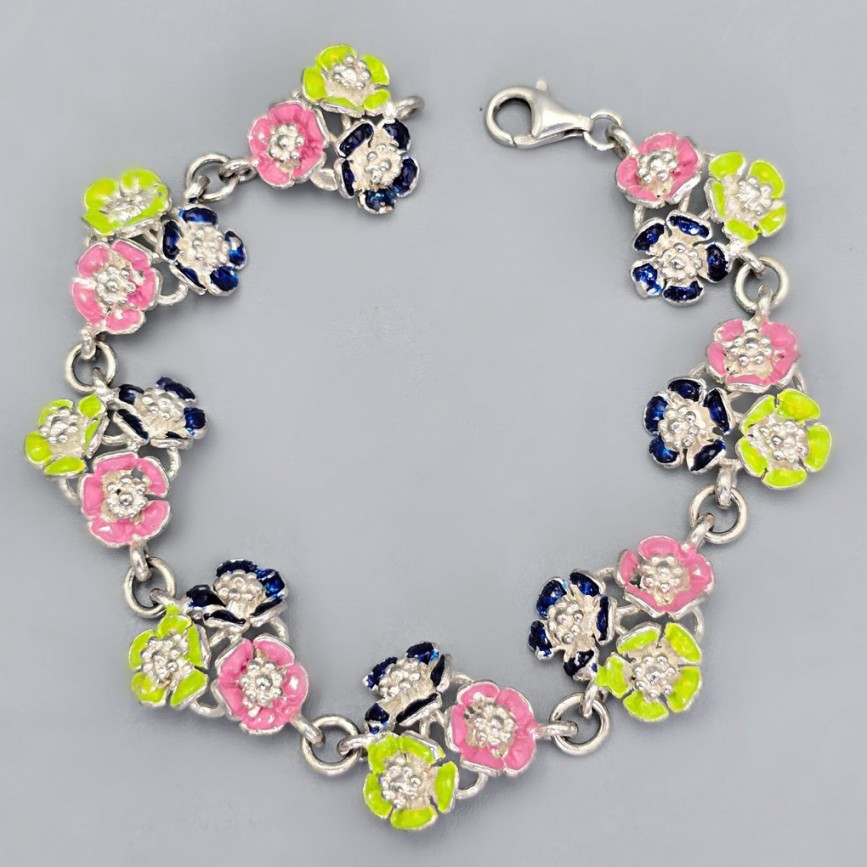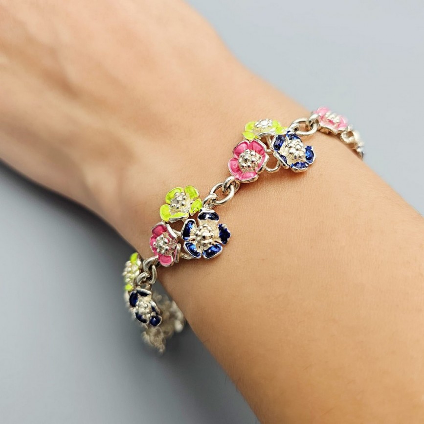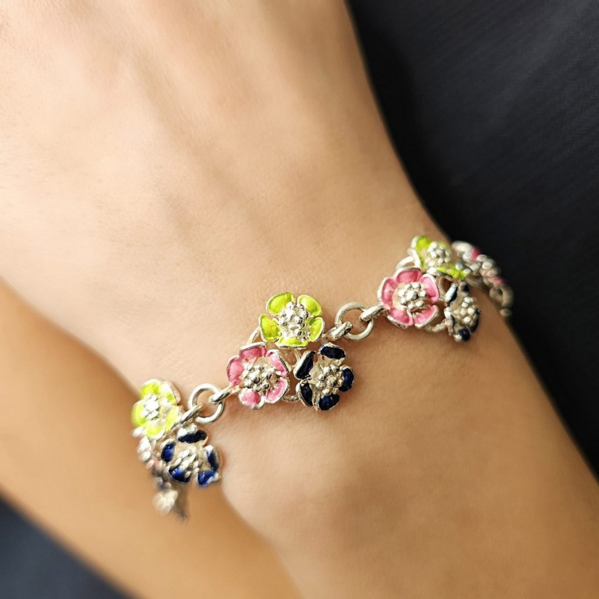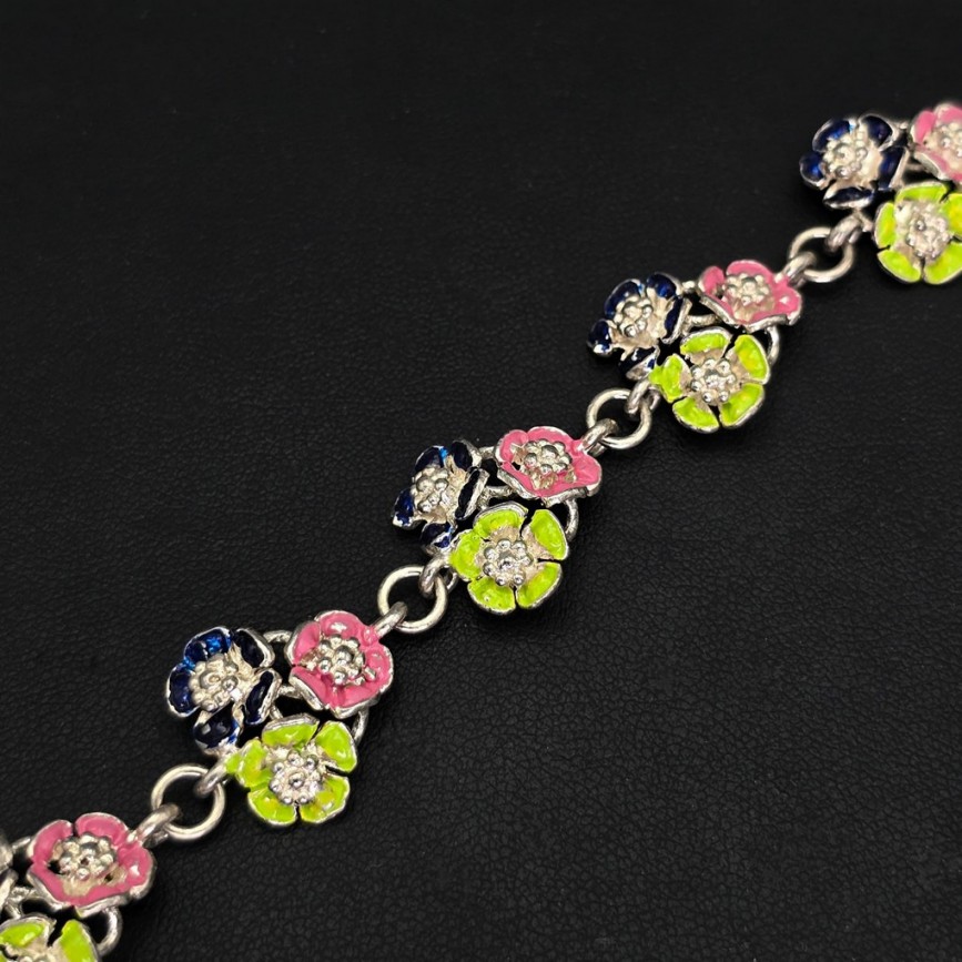 Brățară vintage din argint masiv, decorată cu email vitrificat policrom.