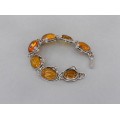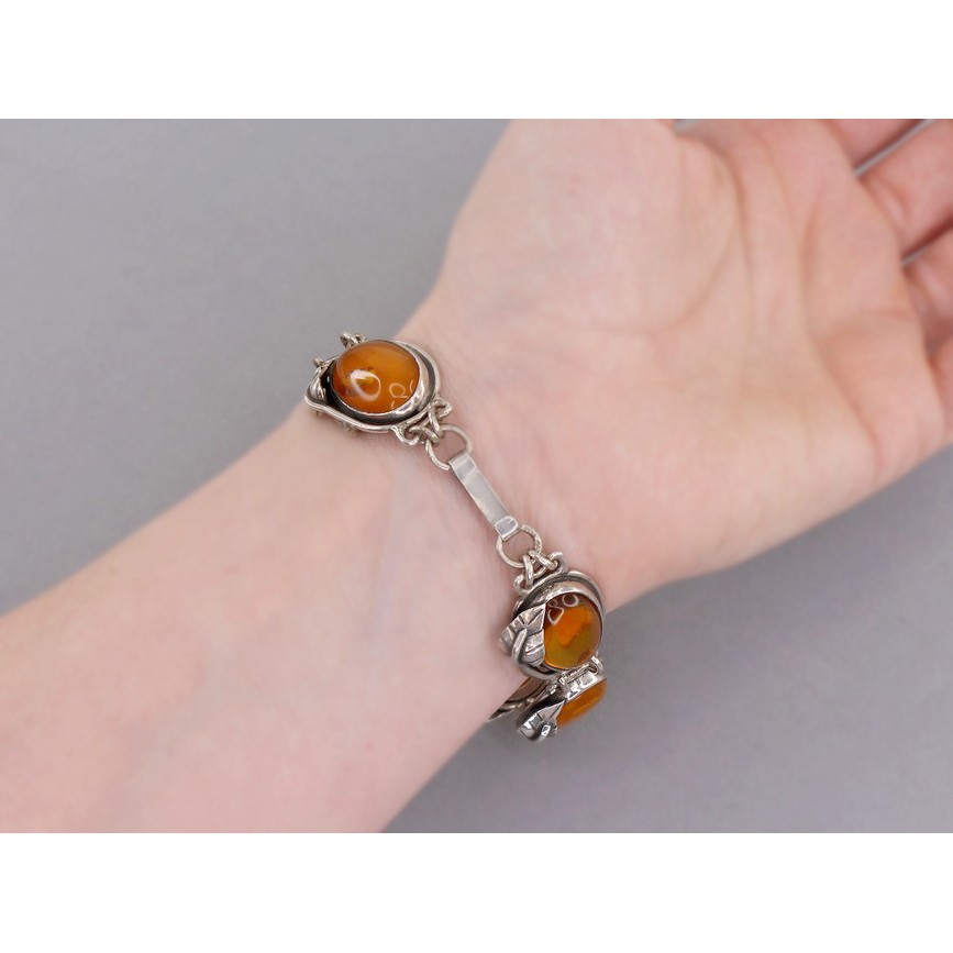 Remarcabilă brățară vintage din argint & chihlimbar baltic natural