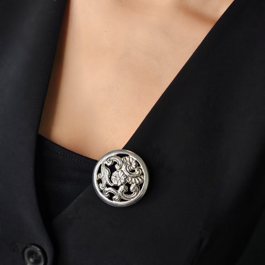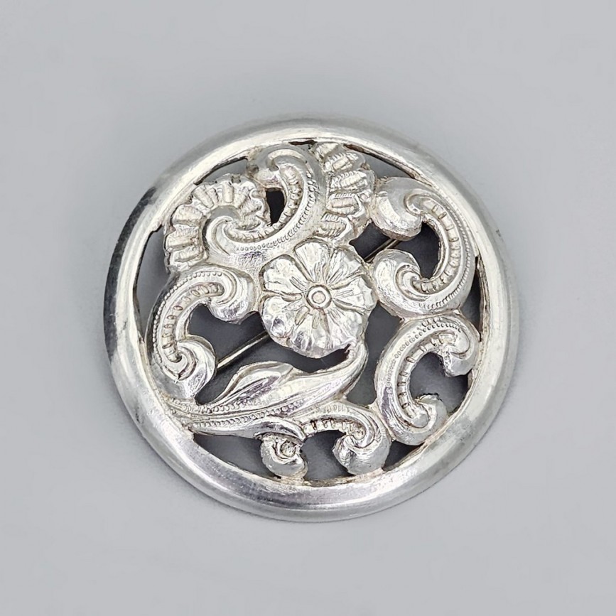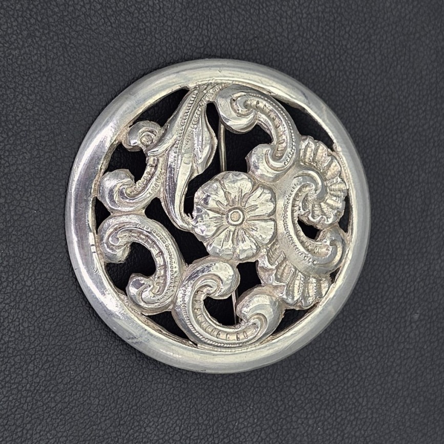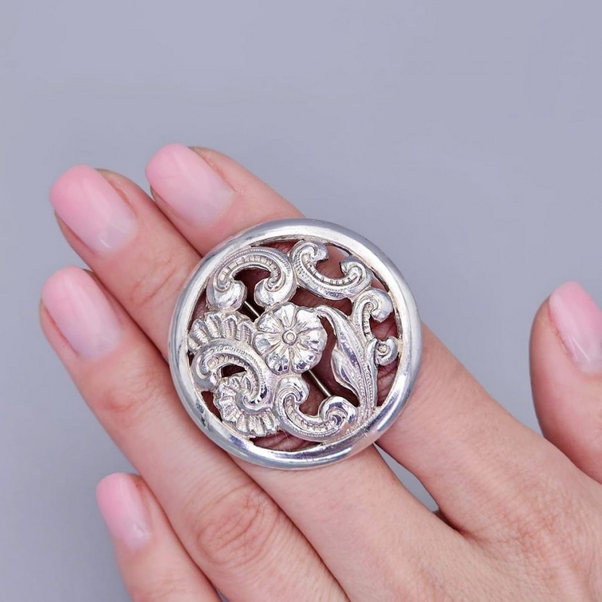 Broșă antique autentică Art Nouveau manufacturată în argint.
