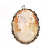 Elegantă broșă vintage din argint de perioadă mid-century, cu design splendid elaborat în manieră Art Nouveau.