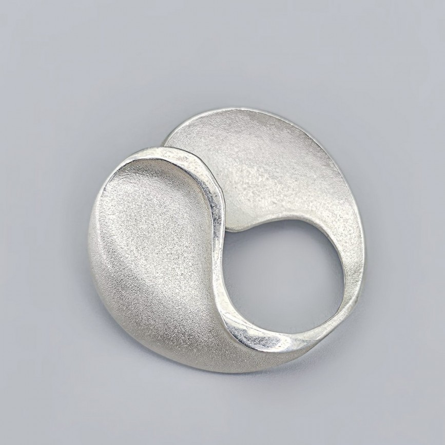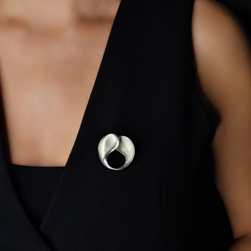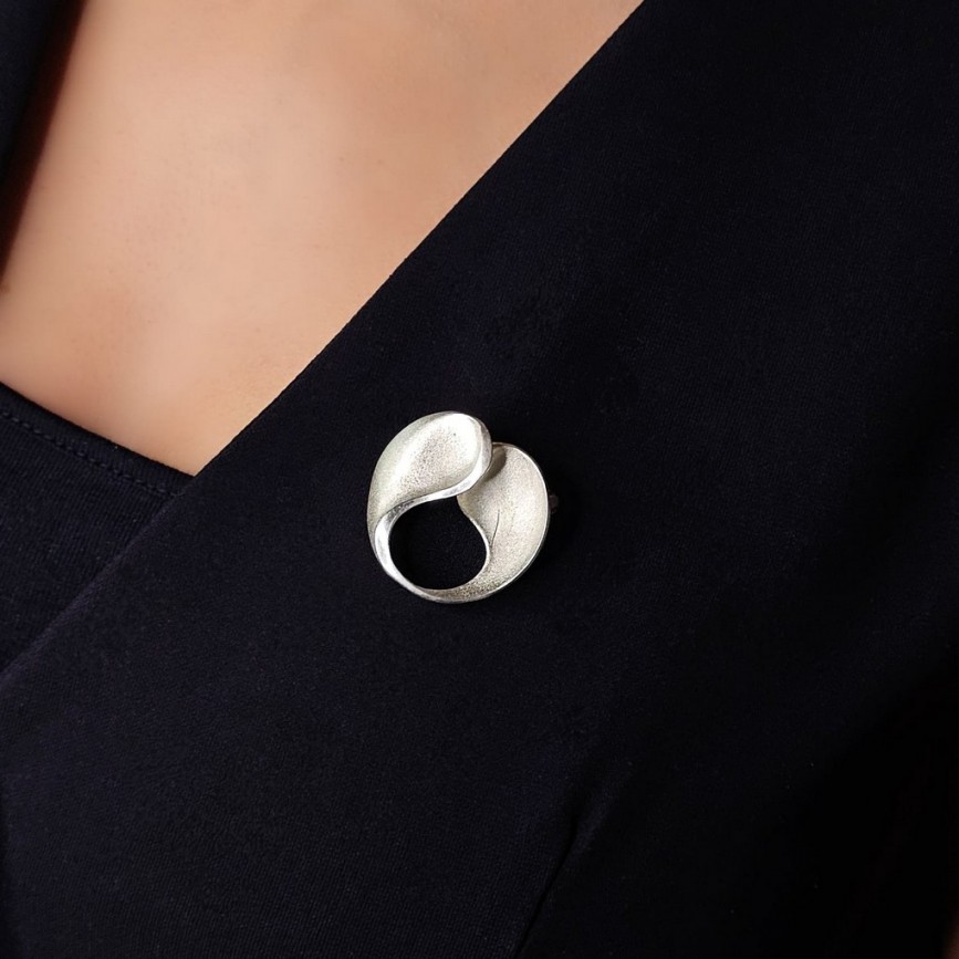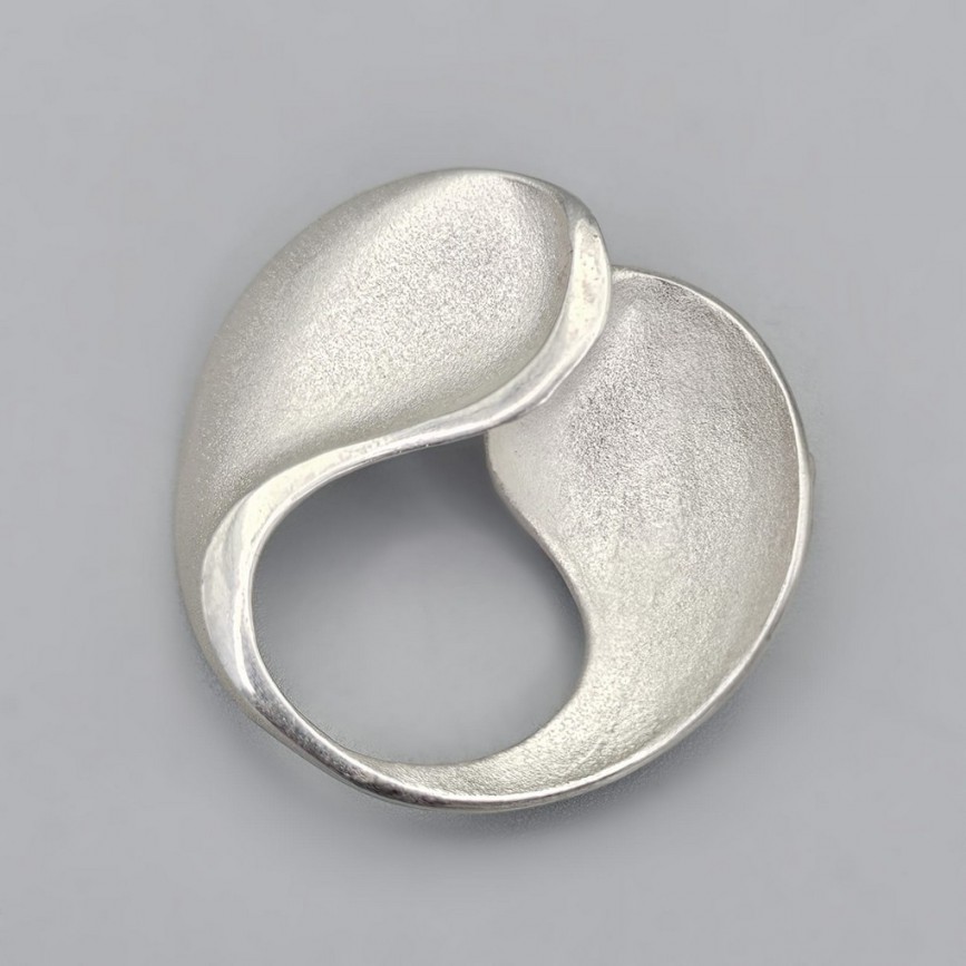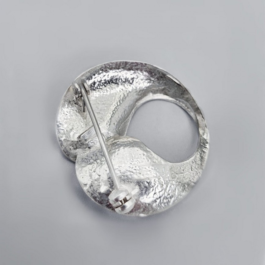 Broșă de autor realizată în argint 835 rodinat, aparținând curentului modernist mid-century,