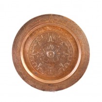 basorelief pe fond texturat prin martelare încadrat în friză meandrată exprimată, gravată cu ripsuri fine