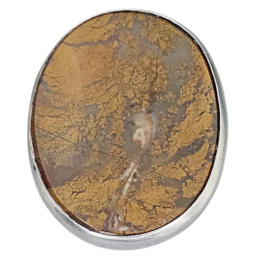 Broșă statement din argint decorată cu un remarcabil anturaj de agat dendritic scoțian
