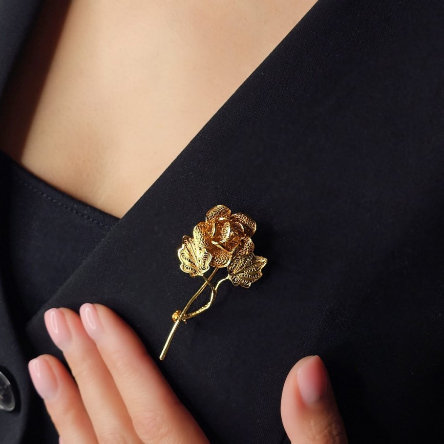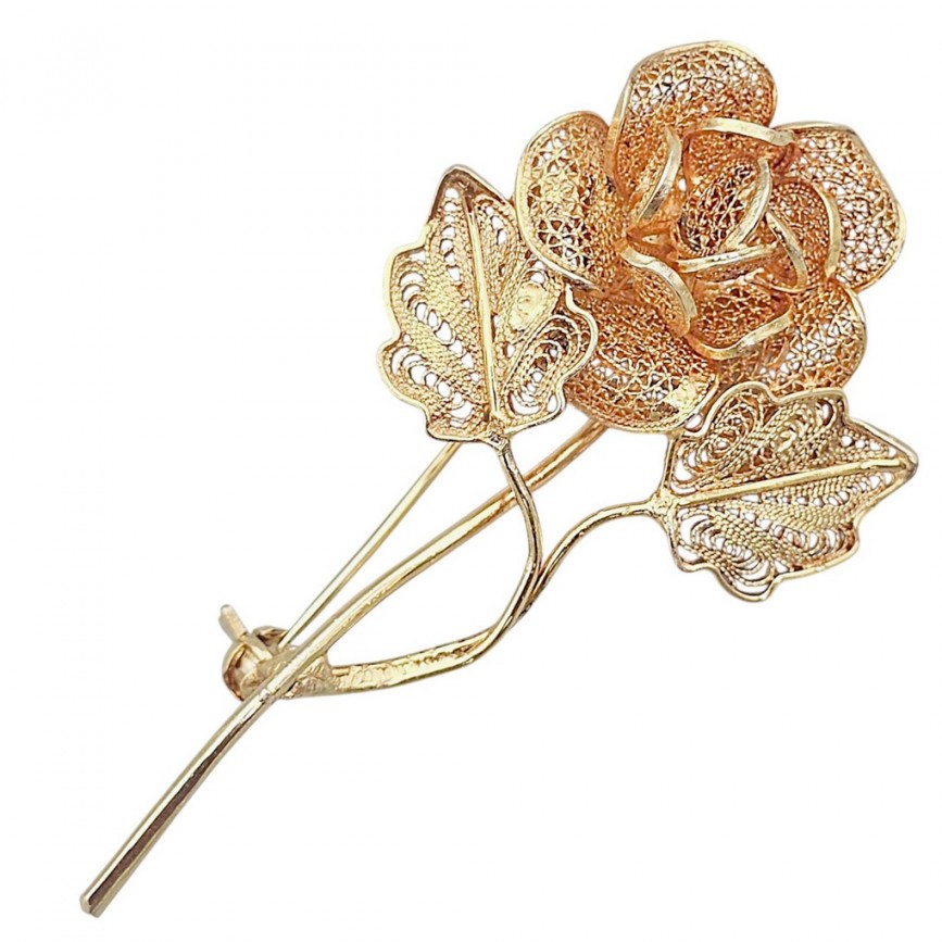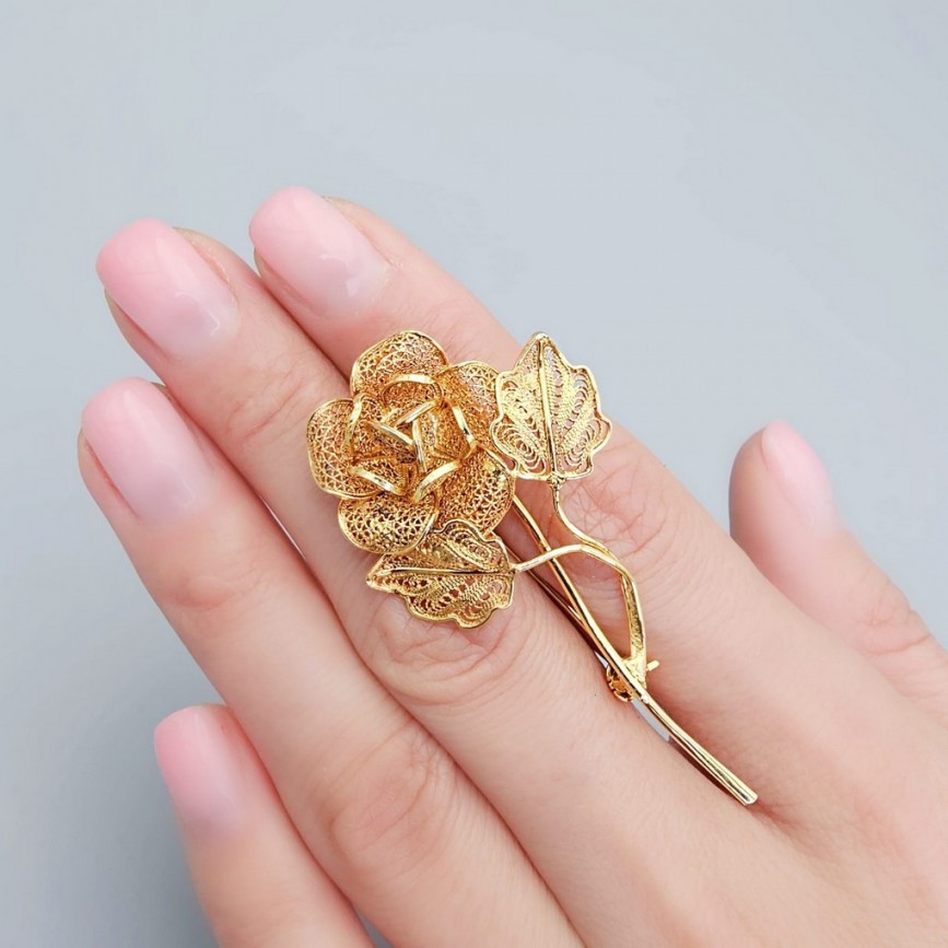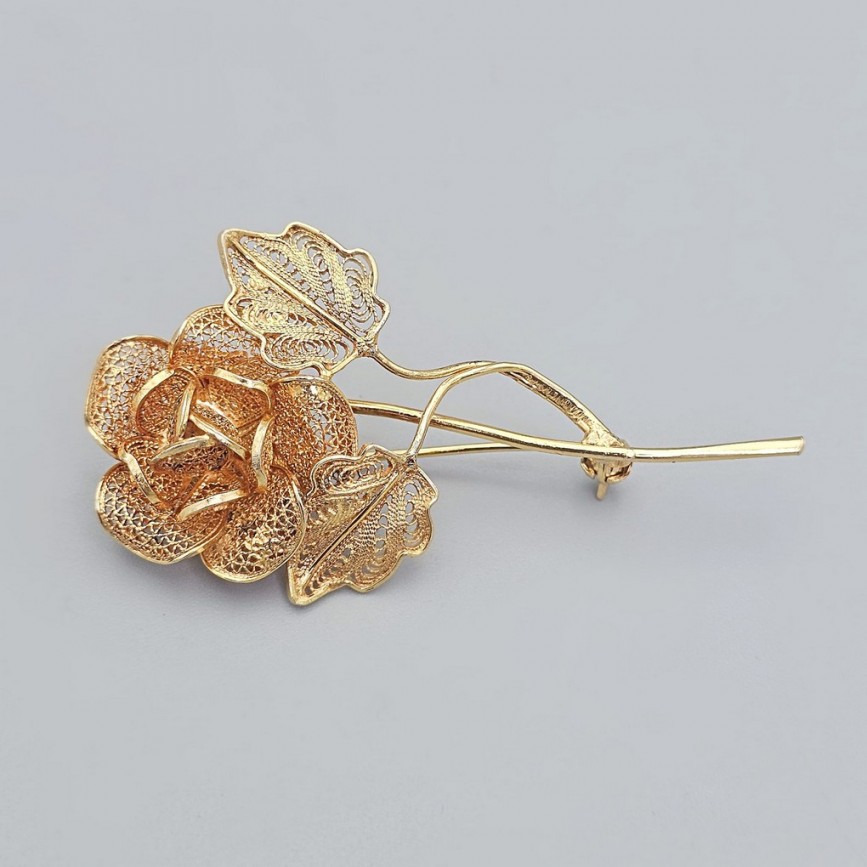 Broșă vintage " Trandafir " din argint filigranat & placat cu aur rosè.
