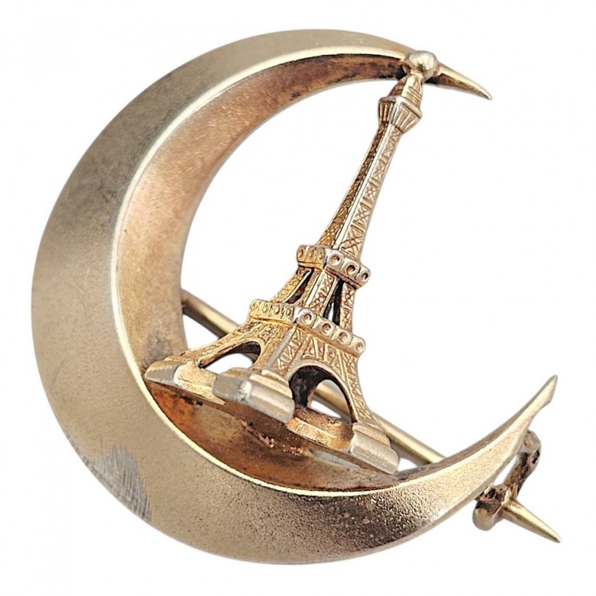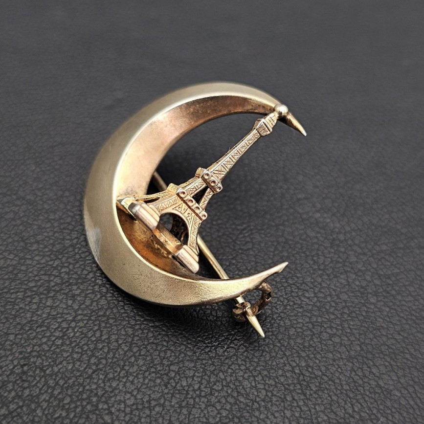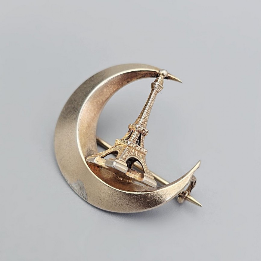 Broșă antique „Tour Eiffel - Exposition Universelle de Paris 1889 " din argint aurit
