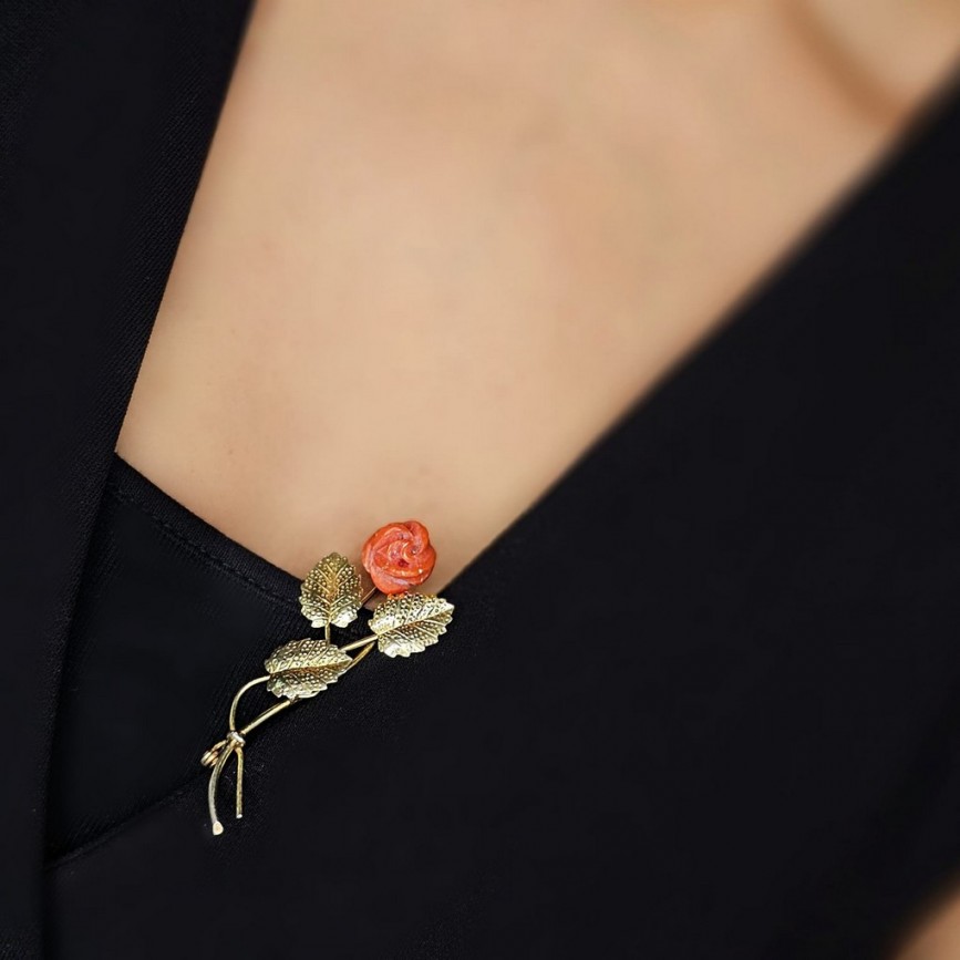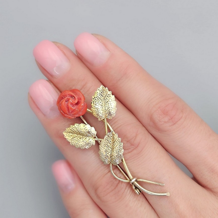 Design floral cu frunze fin texturate & coronament floral sculptat în coral natural de Sardinia.