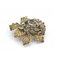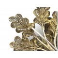 Stilizată sub forma unei ramuri înfrunzite și înflorite, această bijuterie se remarcă atât prin complexitatea compoziției amplu volumizate, cât și prin impetuozitatea execuției tehnice.