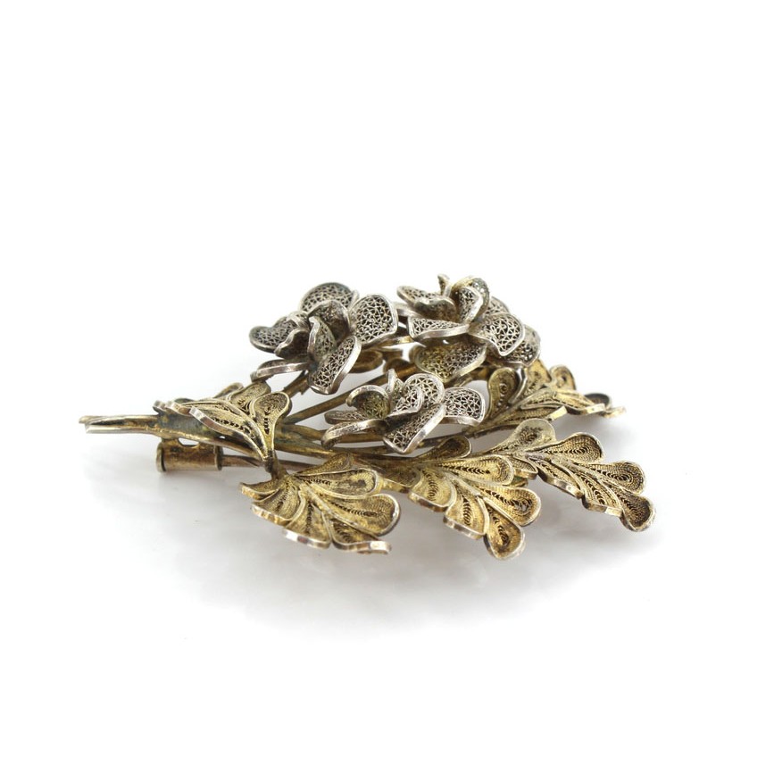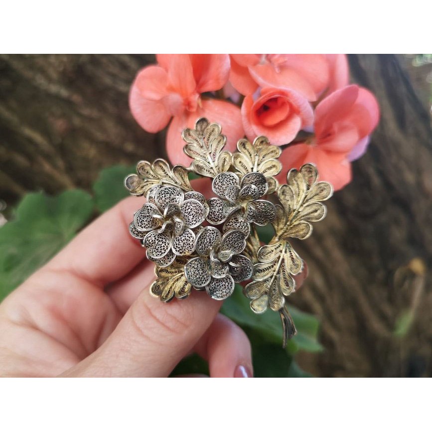 Veche broșă statement din argint filigranat