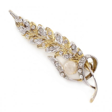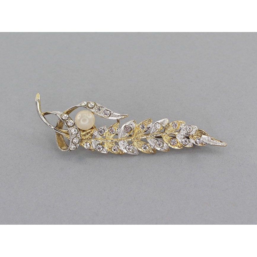Broșă vintage, elegant elaborată sub forma unei ramuri înfrunzite.
