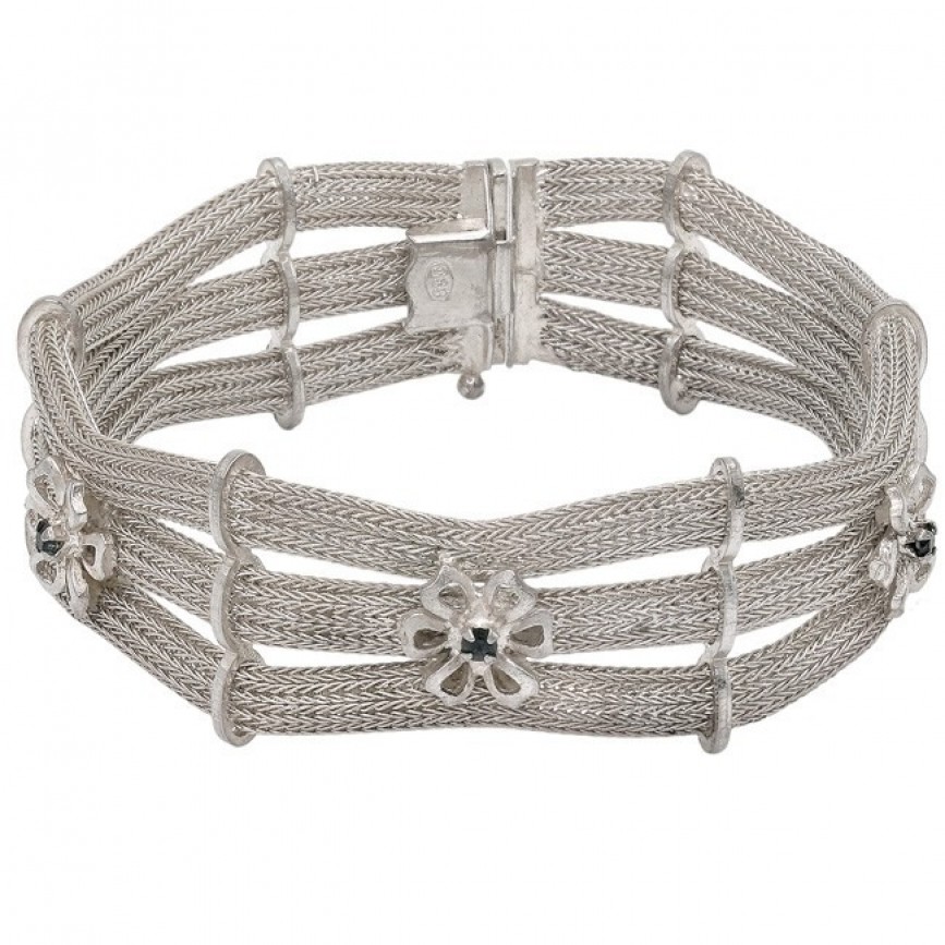 Elegantă brățară Art Deco din argint împletit, decorată cu safire naturale.