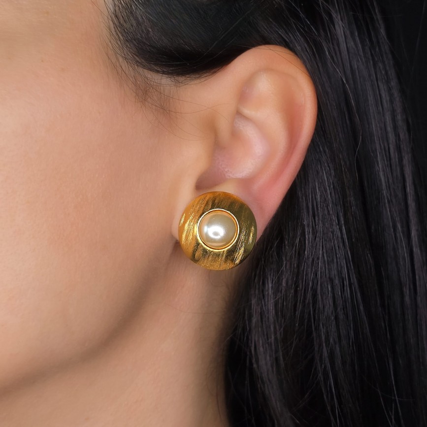 Cercei statement retromoderniști Yves Saint Laurent, decorați cu anturaje de perle faux.