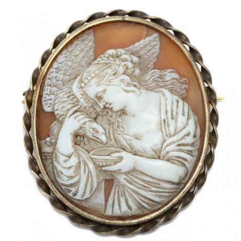 Camee de dimensiuni mari, sculptată în molusca Cassis madagascariens, ilustrând scena din legenda Hebei (mitologia Greciei Antice).
