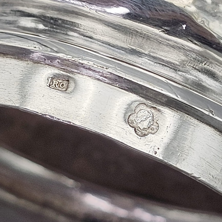 montură robustă în argint, turnat, gravat, presat și cizelat