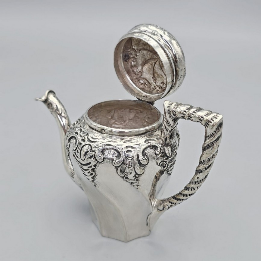 Ceainic vienez miniatural din argint în manieră neo-rococo pentru servire solitaire.