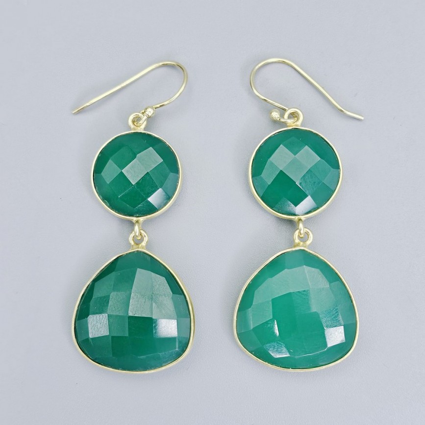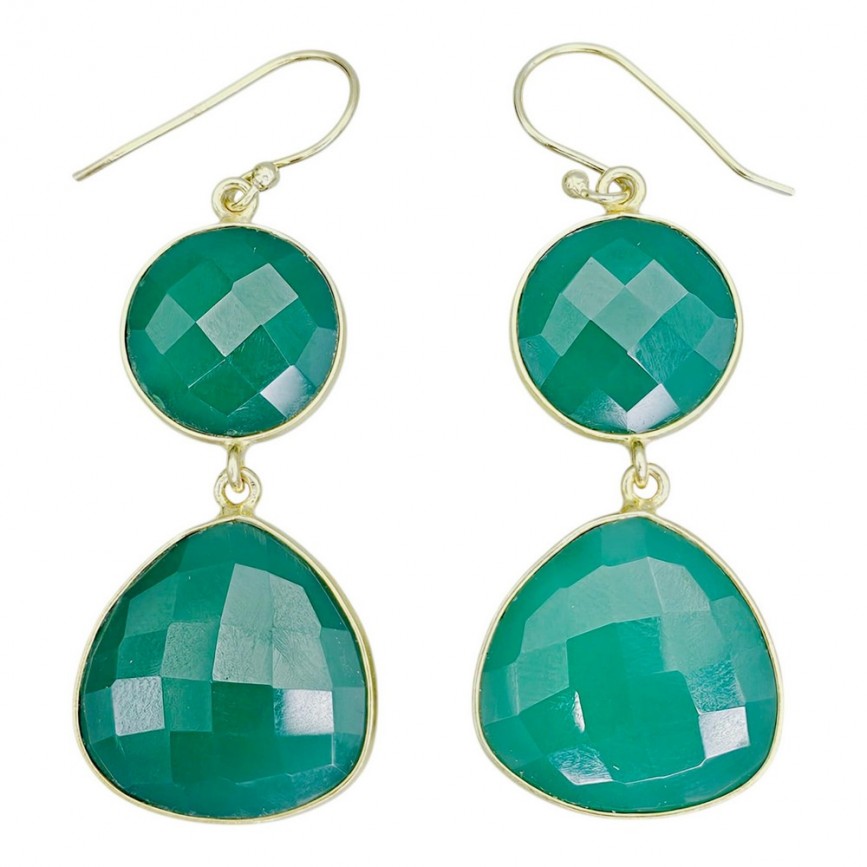 Cercei statement din argint placat cu aur galben, decorați anturaje de calcedonia verde.