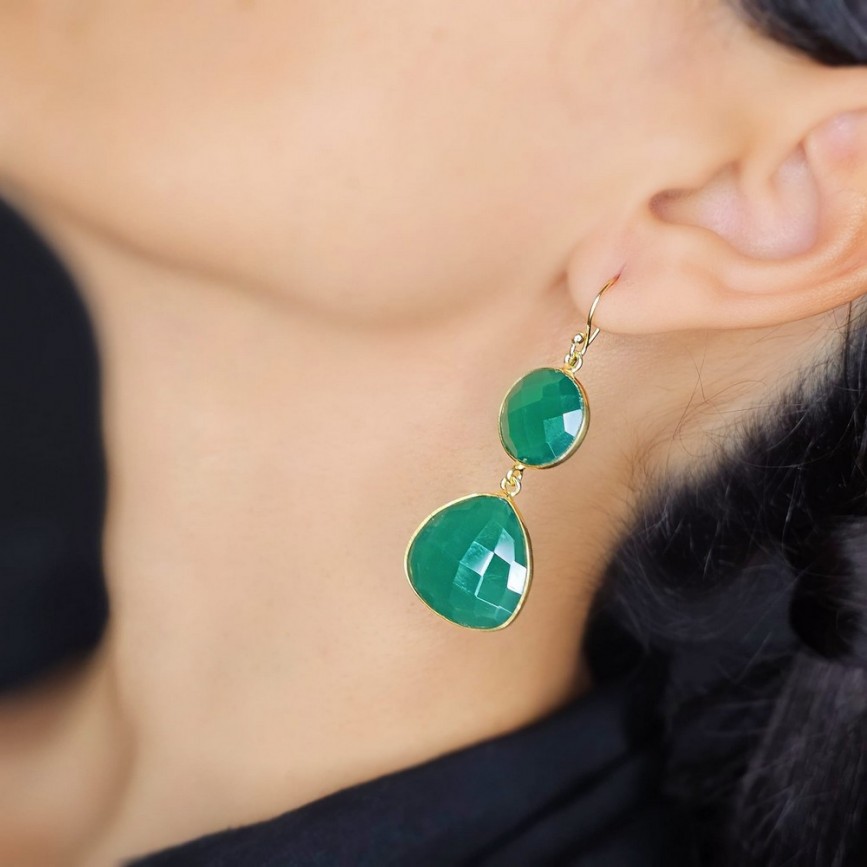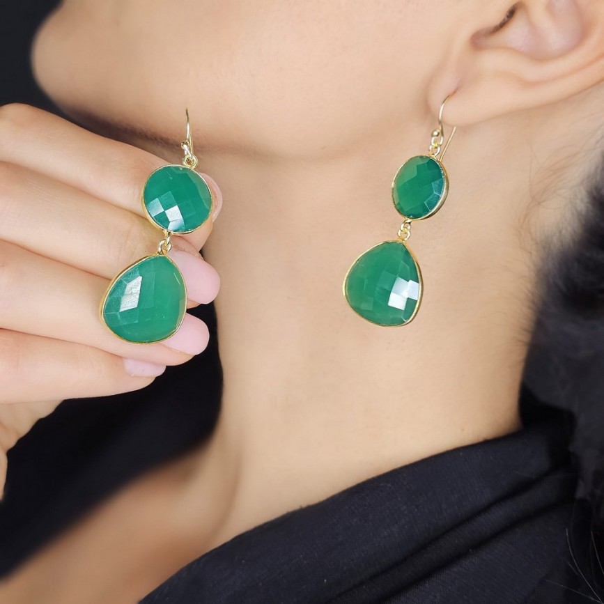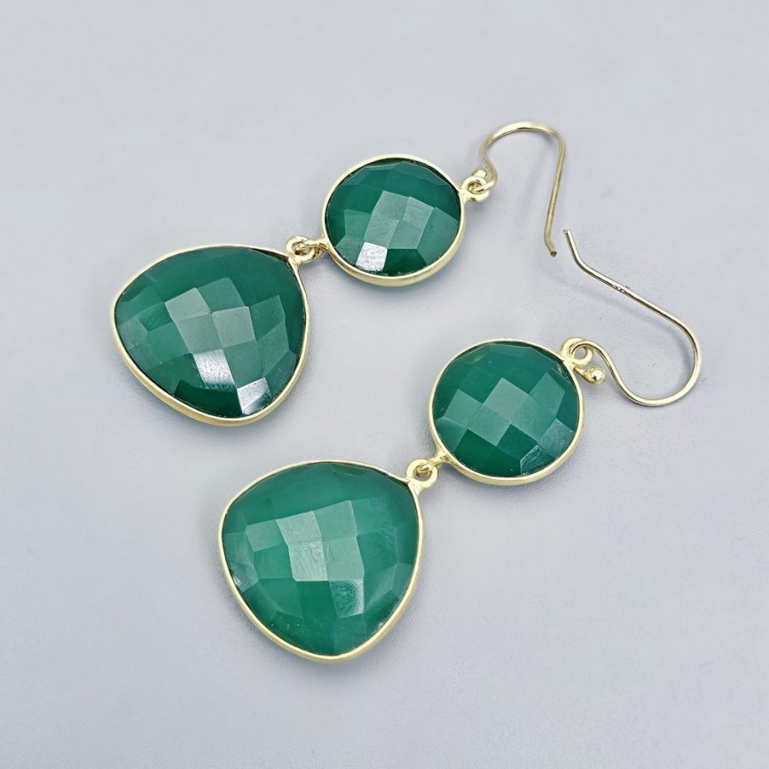 Cercei statement din argint placat cu aur galben decorați cu calcedonia verde