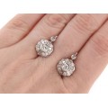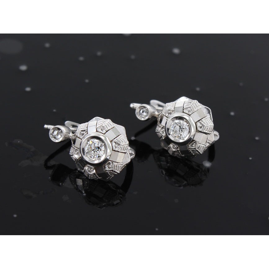 Rafinați cercei Art Deco manufacturați în aur alb 18 k și decorați cu 4 diamante naturale: