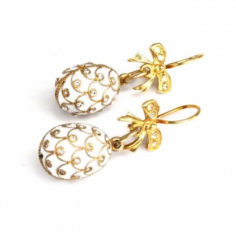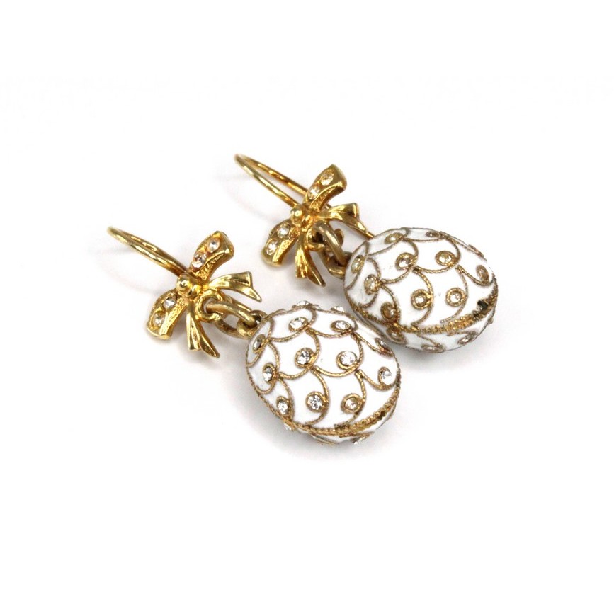 Opulenți cercei candelabru, de ocazie, elegant stilizați în manieră specifică vechilor bijuterii Fabergé.