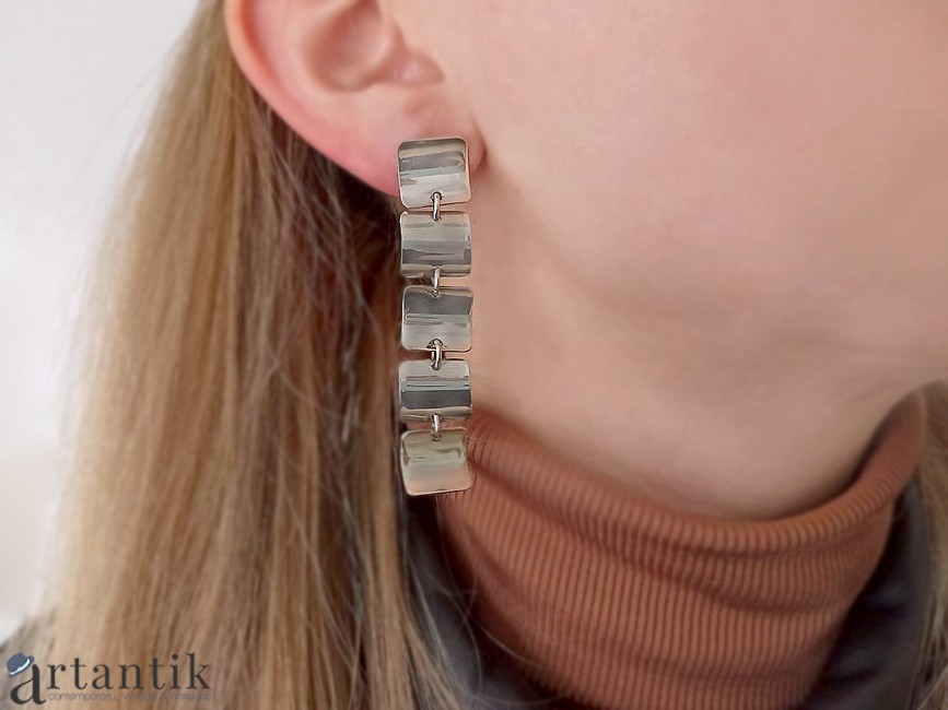 Cercei statement, din argint, inedit stilizați în manieră modernistă caracteristică designului contemporan.